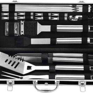 Grilljoy 22-Piece BBQ Grill Tools Set – Premium Stainless Steel Grilling Accessories with Durable Aluminum Case – Outdoor Barbecue Utensils Kit – Perfect Grilling Gift for Men, Dad, or Backyard Chefs